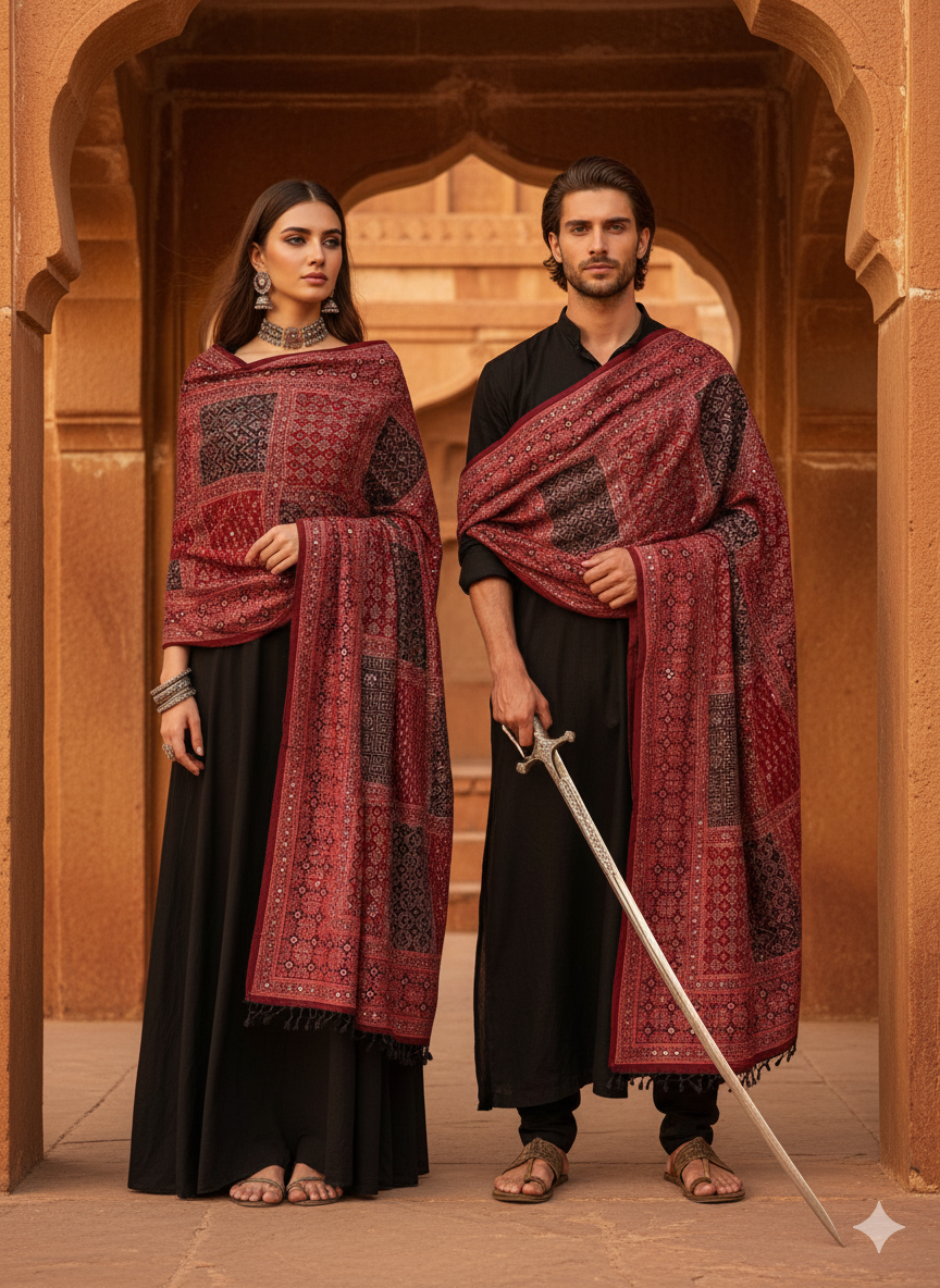 Malang’s Ajrak isn’t just clothing , it changes the way you carry yourself. I bought the black and Maroon shawl and the subtle print variations make it feel unique, not factory-made. I love deep shade of Maroon