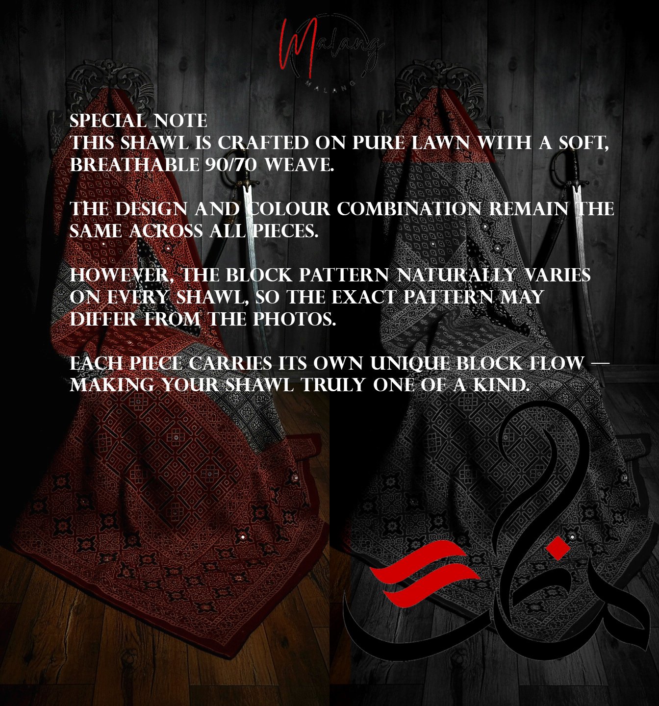 I bought the maroon F-block patterned shawl and I genuinely didn’t expect it to look this stunning in person. The size is perfect, and the flow of the fabric makes it drape effortlessly. It has that ‘Malang’ character , modern, bold, but still deeply rooted in craft. I ended up ordering a second one for my sister.